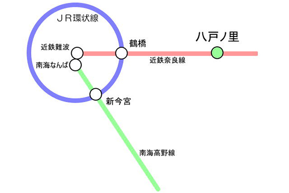 八戸ノ里駅より北に150m、信号を右折し東へ150m